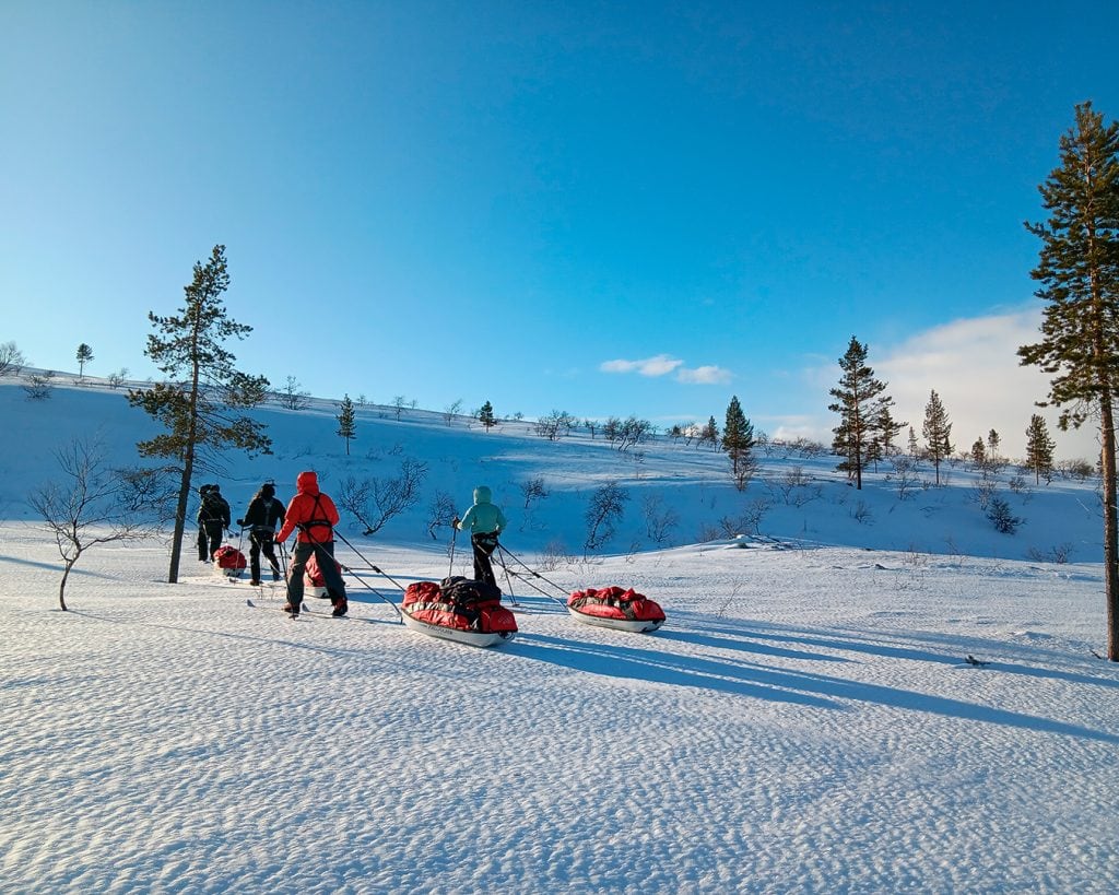 The lake ice is thick and completely safe, guaranteeing excellent ice fishing conditions. There’s something wonderfully meditative about drilling through metre-thick ice, dropping your line, and waiting in crystal-clear Arctic air. March also delivers fantastic conditions for tobogganing (pure joy at any age), traditional cross-country skiing, fatbiking, and multi-day backcountry treks. The combination of reliable snow, sunshine and peaceful trails creates the perfect Arctic rhythm.