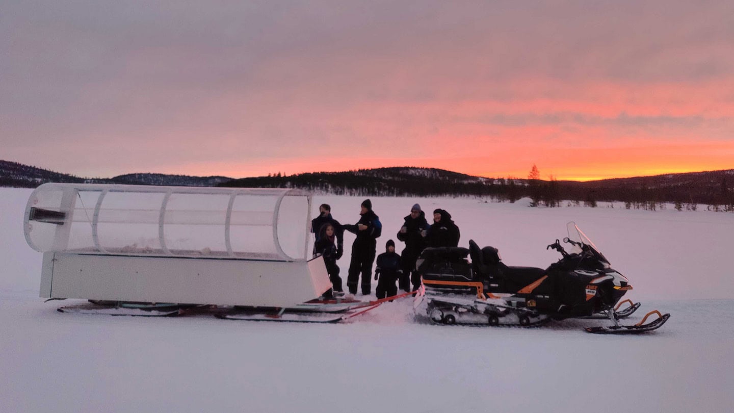 Take a seat in the heated Aurora sleigh and relax as your guide tows the sleigh with a snowmobile through the snow-covered forest and across the frozen lake. Enjoy the journey away from light pollution while staying warm and comfortable.